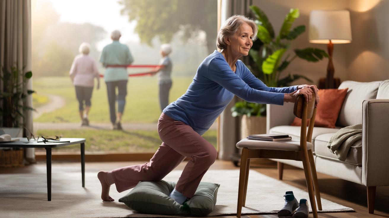 Maybe your version is: stand, sit, scoot a little lower, come back up with both hands pressing on your thighs. Over weeks, that little “scoot” becomes a deeper bend. Over months, it might become a kneel, then a half-kneel, then a controlled sit on a low stool.